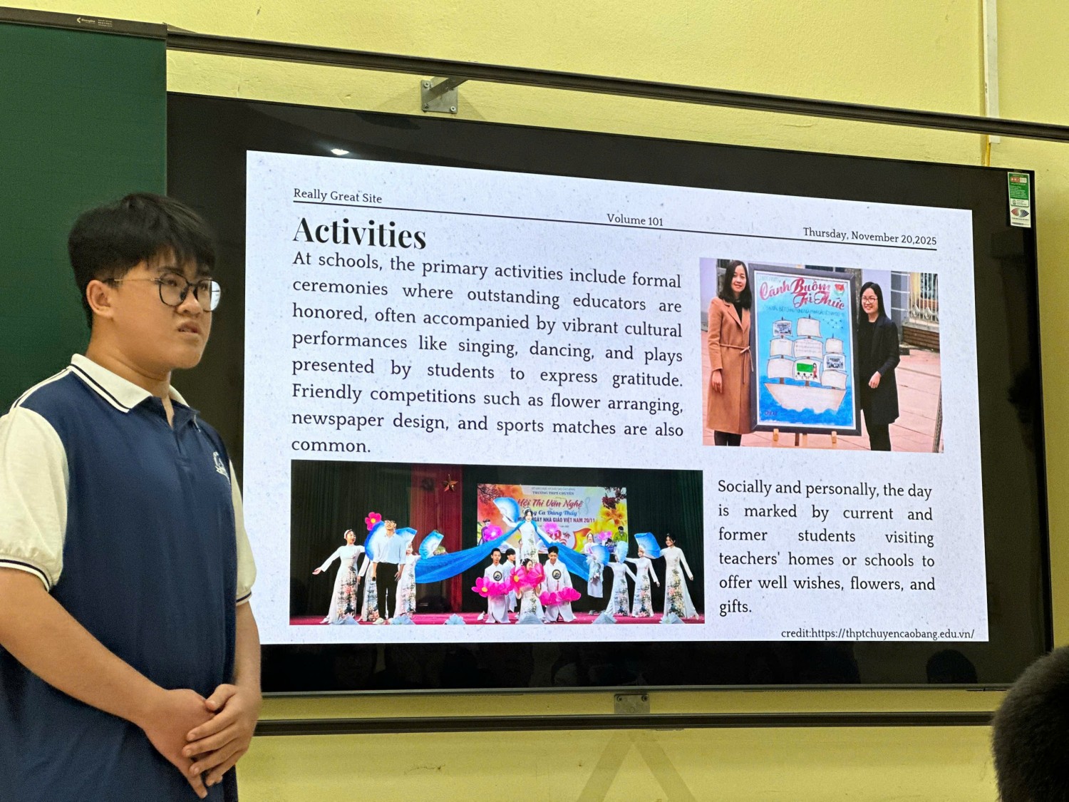 Học sinh lớp 10 Anh 2 thuyết trình về Kỷ niệm ngày nhà giáo 20 tháng 11