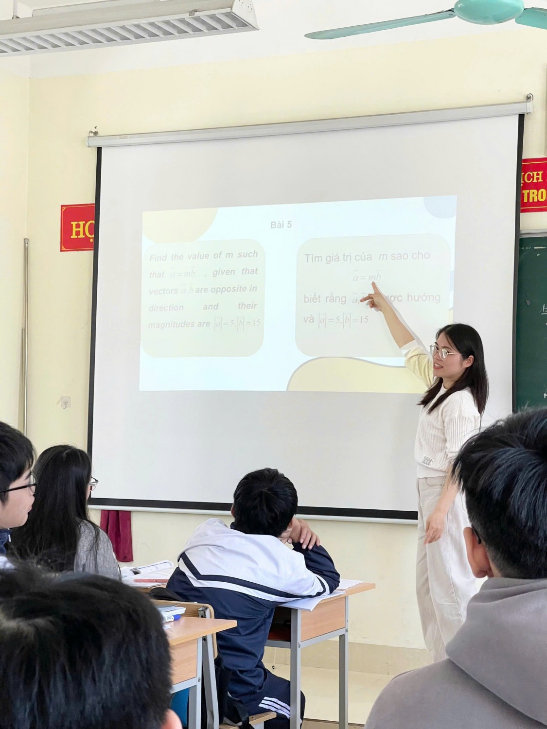 Đây là bước tiến quan trọng trong việc chuyển từ lớp học truyền thống sang môi trường giáo dục hiện đại, mở ra không gian học tập đa ngôn ngữ – đa công cụ – đa trải nghiệm cho học sinh. Mục tiêu của việc triển khai hoạt động là giúp học sinh dần tiếp cận kiến thức Toán học theo chuẩn quốc tế, làm quen với hệ thống thuật ngữ song ngữ, đồng thời phát triển năng lực ngoại ngữ – một yếu tố không thể thiếu trong bối cảnh hội nhập và kinh tế tri thức. Bên cạnh đó, việc đưa các công cụ AI vào bài giảng giúp quá trình học tập trở nên trực quan, sinh động và giàu khả năng cá nhân hóa.