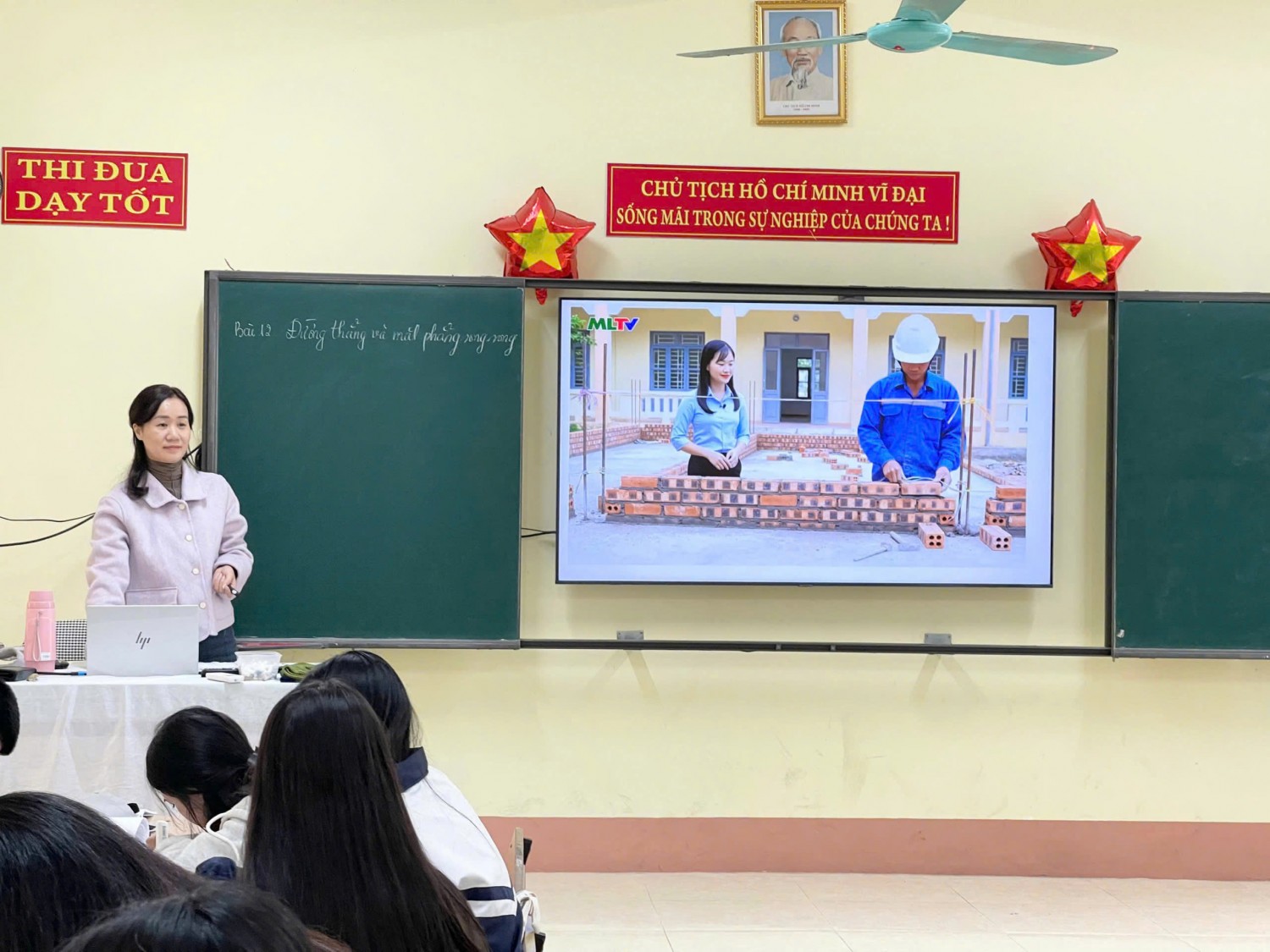 Đồng chí Hoàng Thùy Trang với tiết học sử dụng các viedeo minh họa khái niệm